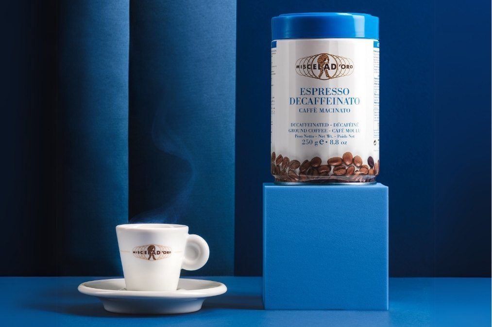 Der entkoffeinierte Espresso Miscela d’Oro ist eine Mischung aus entkoffeiniertem gemahlenem Kaffee mit intensivem Aroma und einer weichen Crema. Entkoffeiniert mit reinem Wasser, Dampf und natürlichen Aromastoffen, die bereits im Kaffee enthalten sind, ohne weitere technologische Hilfsstoffe.