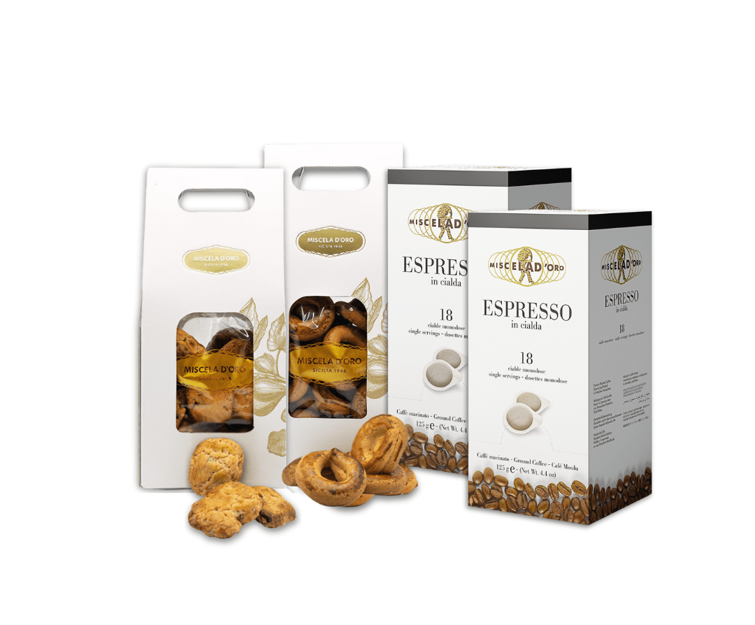 Start your day with the aroma and pleasure of real Sicilian espresso. With Miscela d’Oro coffee pods, you can prepare a creamy and full-bodied espresso in just seconds — just like at the bar. Enjoy it together with fragrant shortbread Ciambelline and the traditional Sicilian almond Nzuddi cookies for a true taste of Sicily