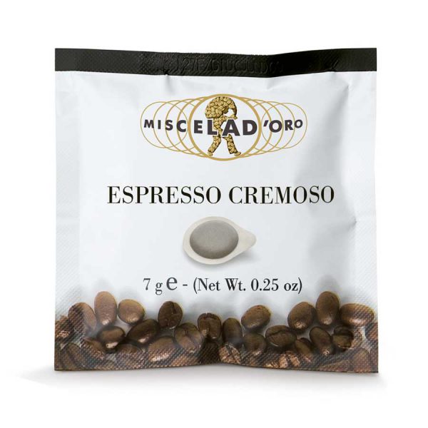 Espresso Cremoso offers an intense and sweet character, an enveloping blend enriched by a superb compact and melt-in-your-mouth crema. The taste spreads in the palate with a sweet liquor flavor, enriched by strong and pungent notes of tobacco and licorice, finishing with a pleasant chocolate aftertaste. Crafted with artisanal roasting, it’s a coffee for perfect lovers, a special crowning of every moment worthy of absolute pleasure. Pack of 150 pods.